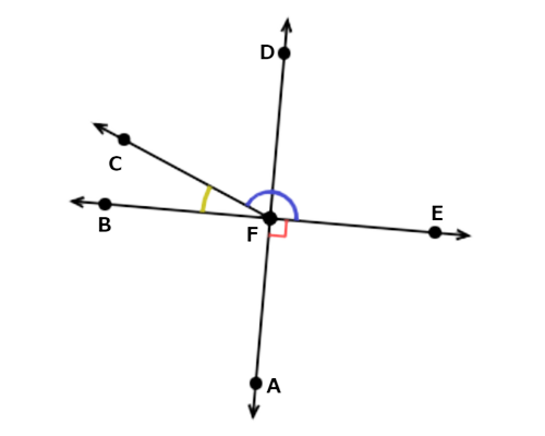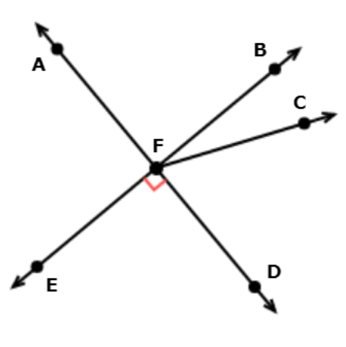 ∠BFC is supplementary to ∠CFE. Together they form a straight line, which has a measure of 180°. So, their angles add up to 180°.