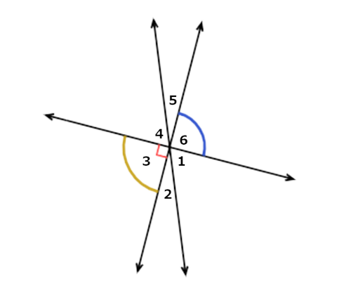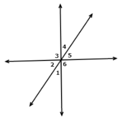 Vertical | Opposite angles when lines intersect | ∠1 = ∠2 | 50° and opposite 50° |