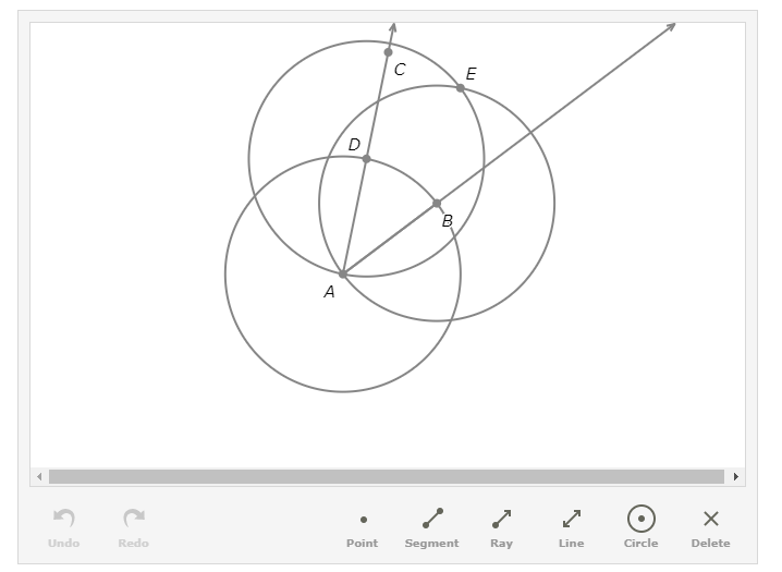 The diagram below shows a nearly completed construction of the bisector of ∠A. Complete the construction.