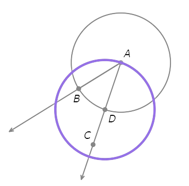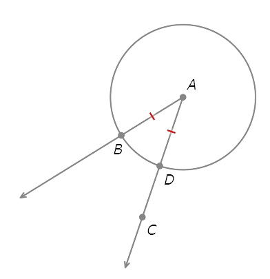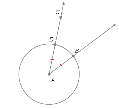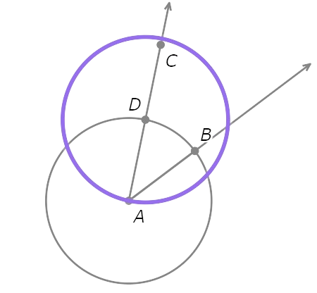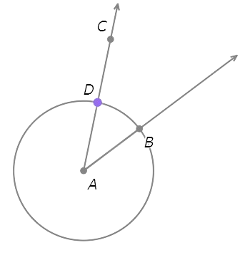 - Mark the point where ⨀A and AC intersect. Call it D.