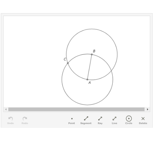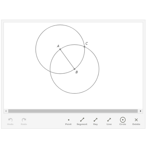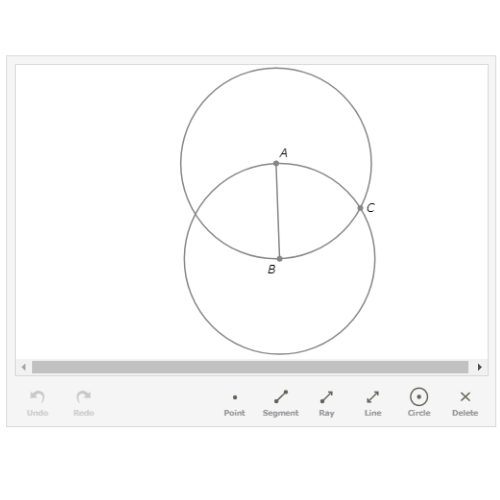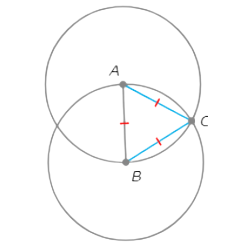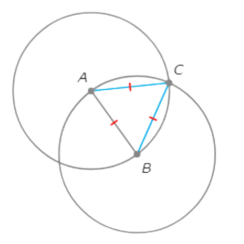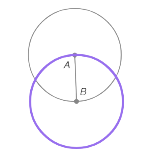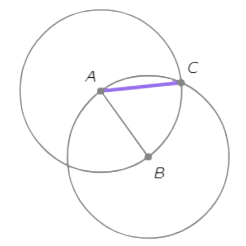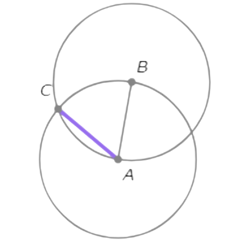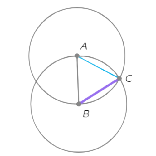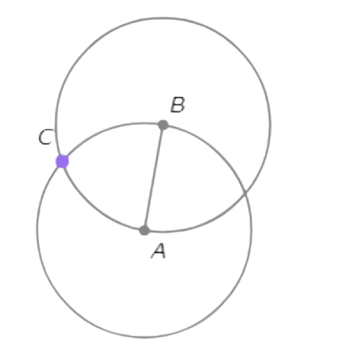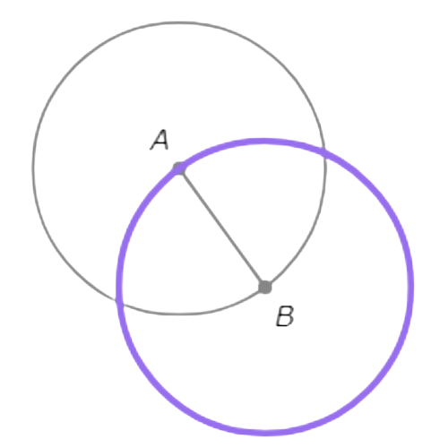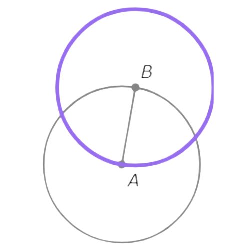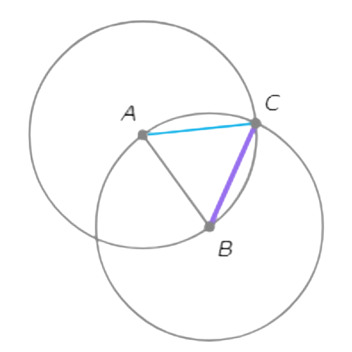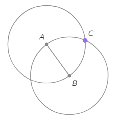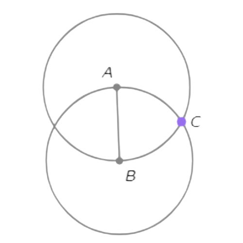 Mark a point where ⨀A and ⨀B intersect. Call it C.