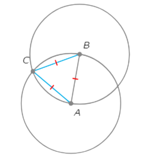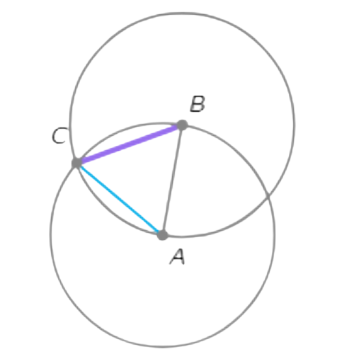 Since B and C are both on ⨀A, AB=AC. Since A and C are both on ⨀B, AB=BC.